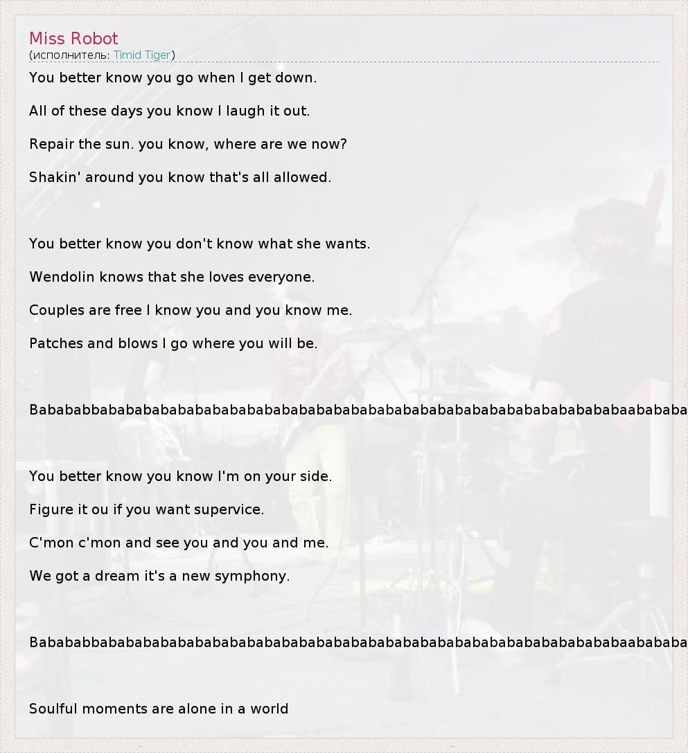 А как ты думаешь, о чем песня "Miss Robot" ?