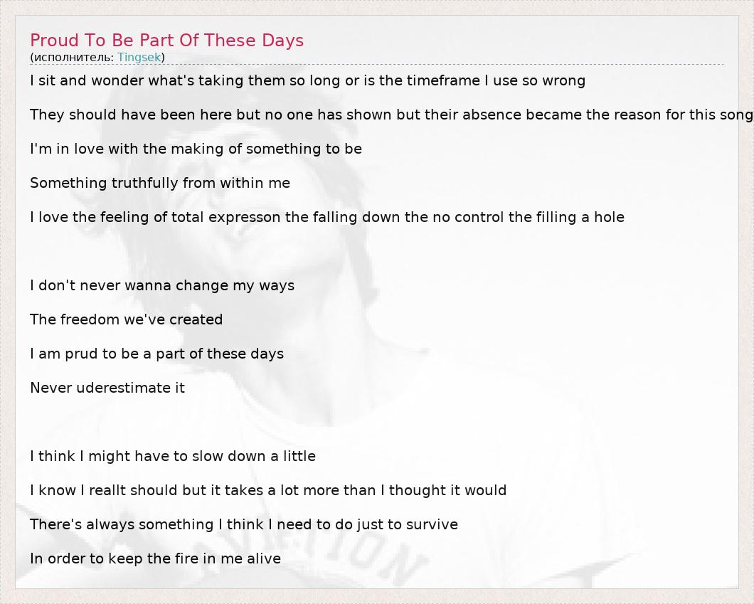 А как ты думаешь, о чем песня "Proud To Be Part Of These Days" ?