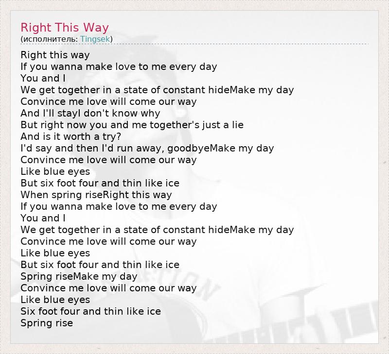 А как ты думаешь, о чем песня "Right This Way" ?