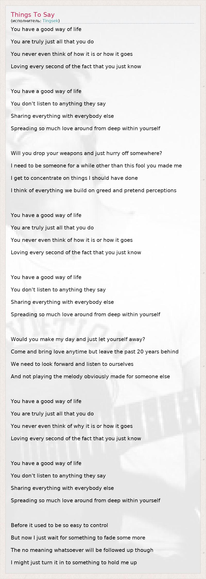 А как ты думаешь, о чем песня "Things To Say" ?