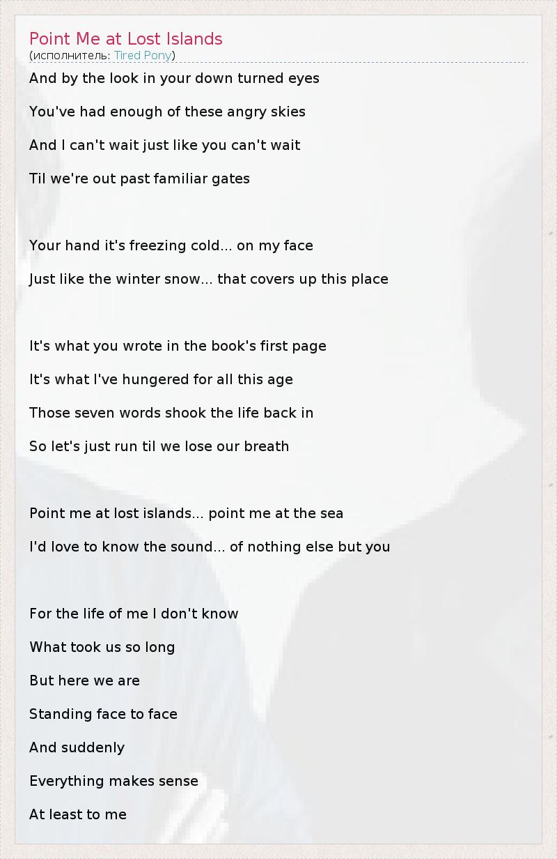 А как ты думаешь, о чем песня "Point Me at Lost Islands" ?