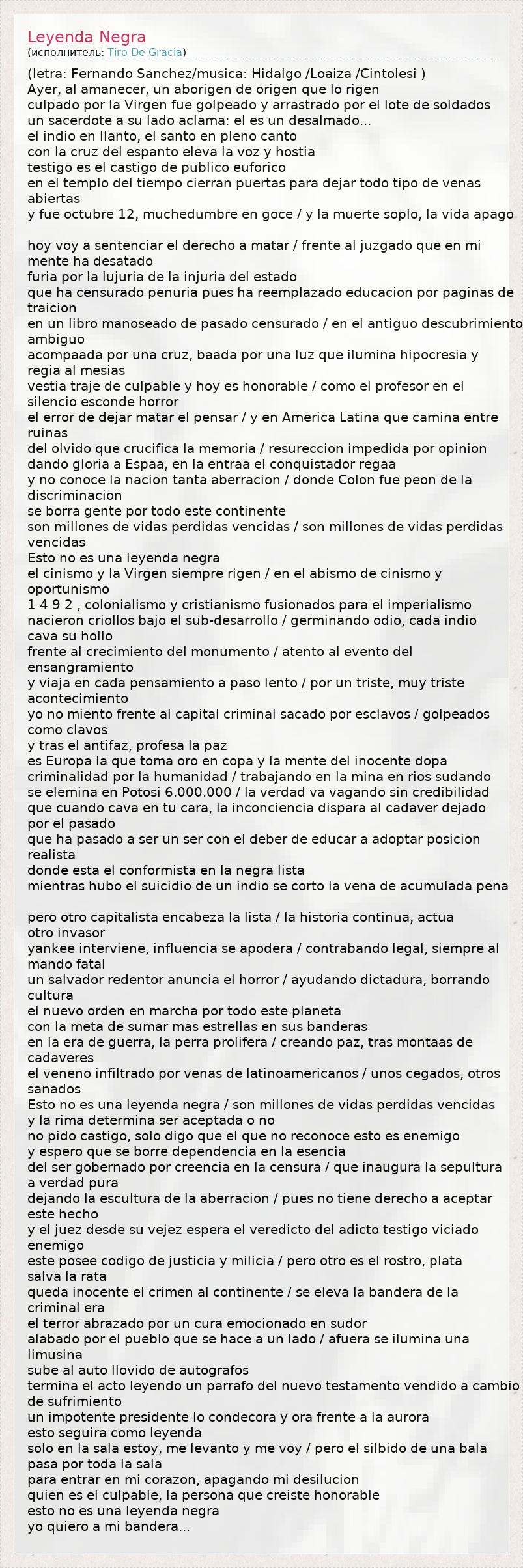 А как ты думаешь, о чем песня "Leyenda Negra" ?