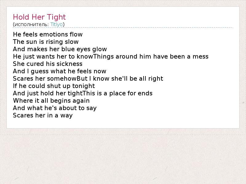 А как ты думаешь, о чем песня "Hold Her Tight" ?