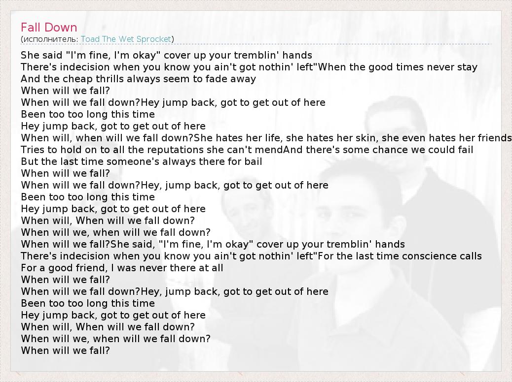 When will we fall?She said, "I'm fine, I'm okay" cover up your tremblin' hands
