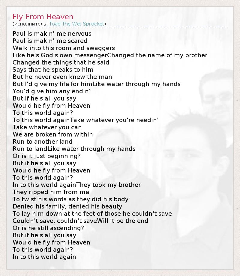 А как ты думаешь, о чем песня "Fly From Heaven" ?