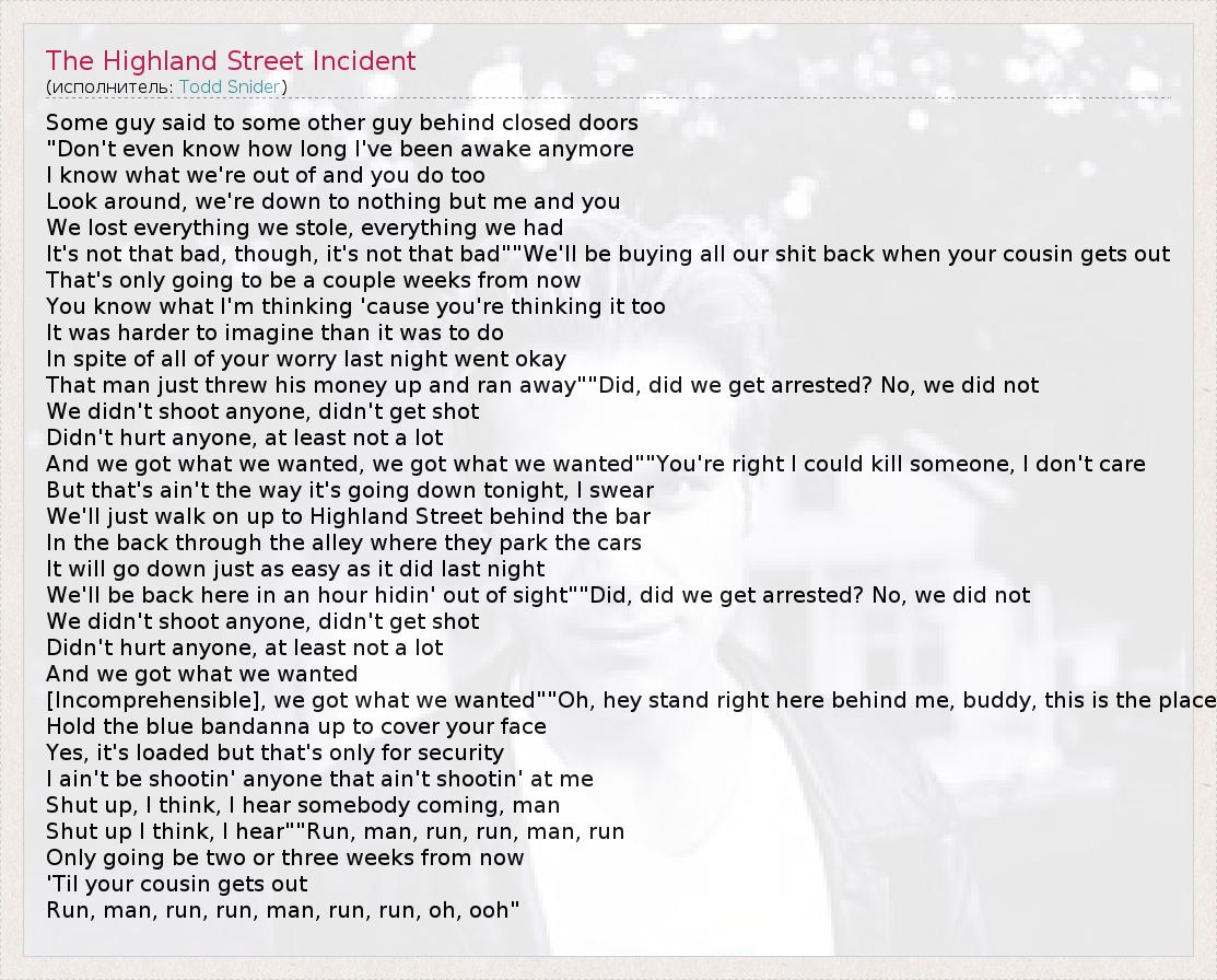 А как ты думаешь, о чем песня "The Highland Street Incident" ?