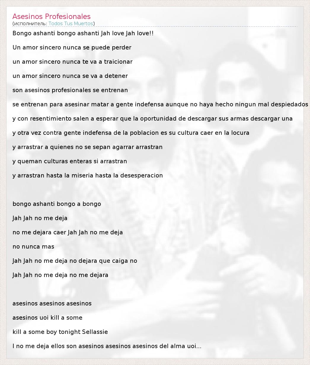 А как ты думаешь, о чем песня "Asesinos Profesionales" ?