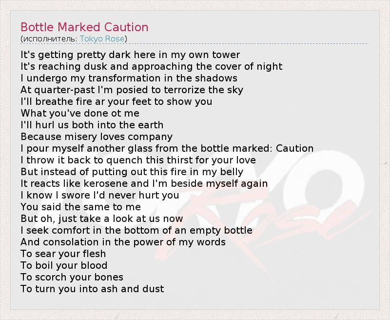А как ты думаешь, о чем песня "Bottle Marked Caution" ?