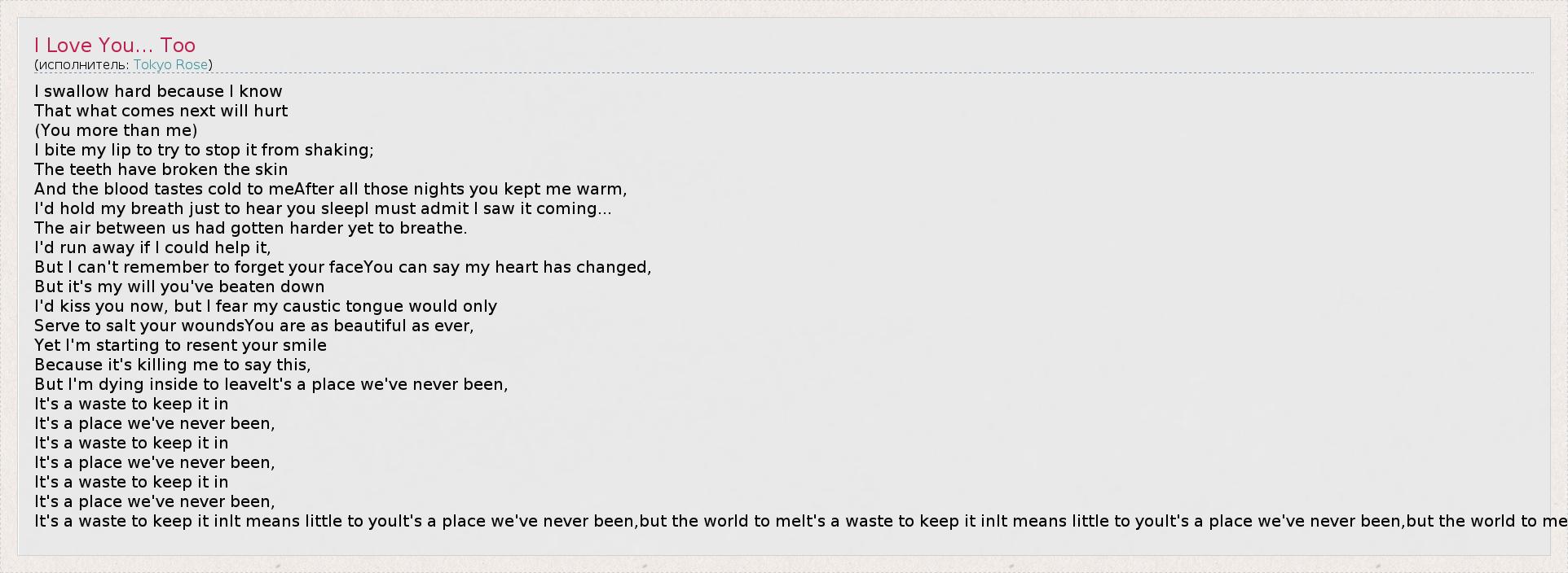А как ты думаешь, о чем песня "I Love You... Too" ?