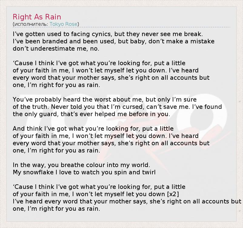 А как ты думаешь, о чем песня "Right As Rain" ?