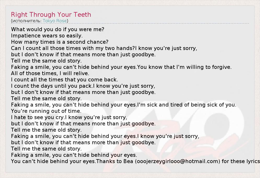 А как ты думаешь, о чем песня "Right Through Your Teeth" ?