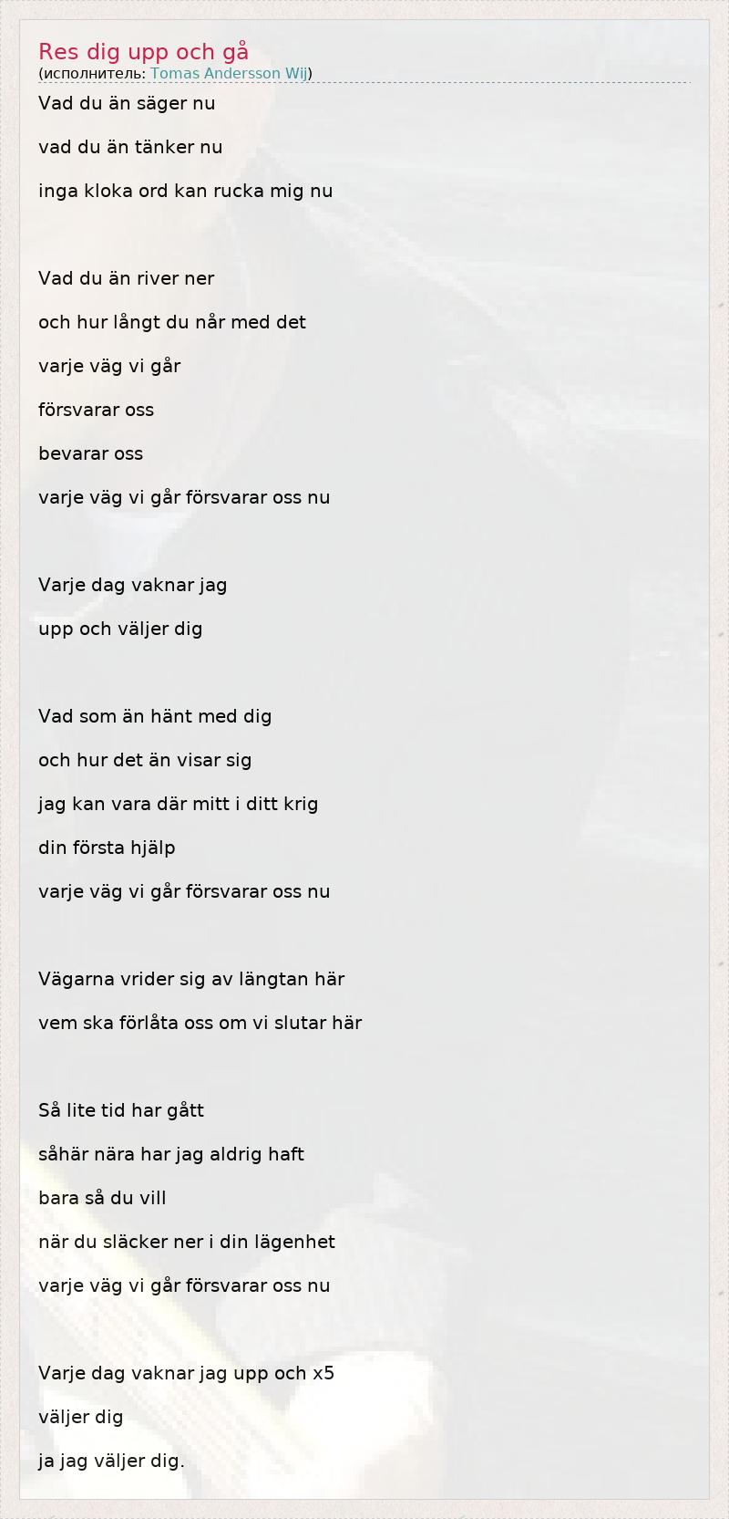 А как ты думаешь, о чем песня "Res dig upp och gå" ?