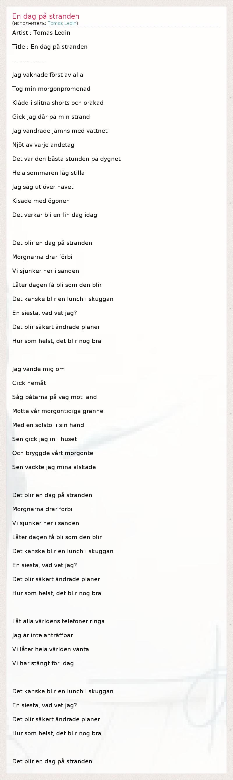 А как ты думаешь, о чем песня "En dag på stranden" ?