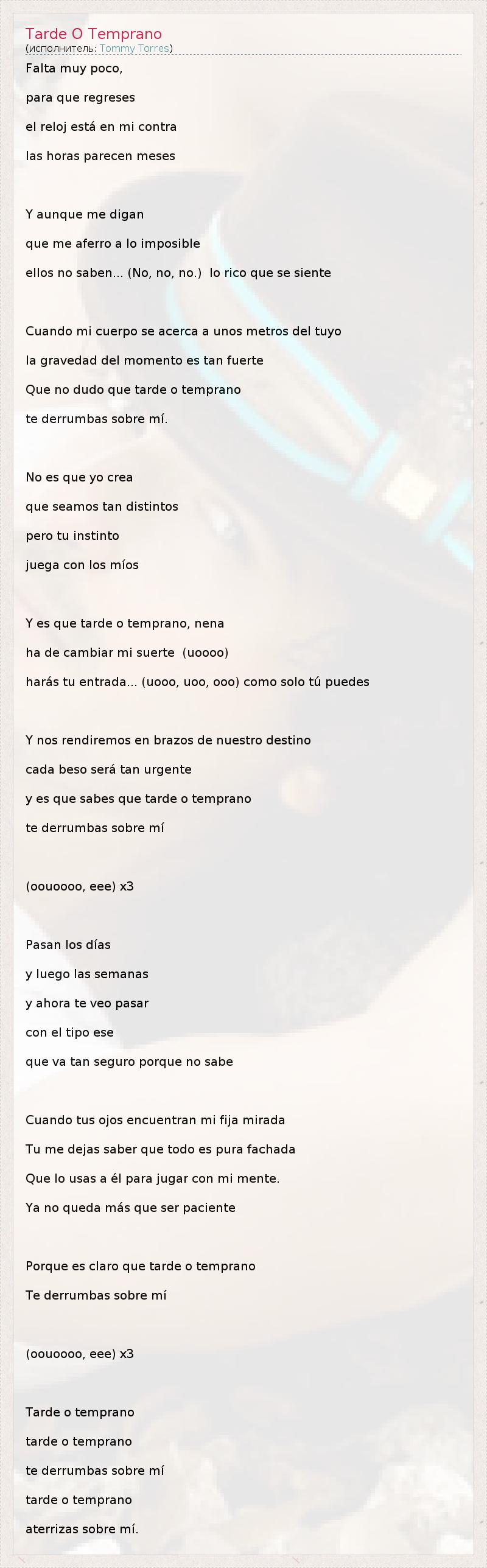 А как ты думаешь, о чем песня "Tarde O Temprano" ?