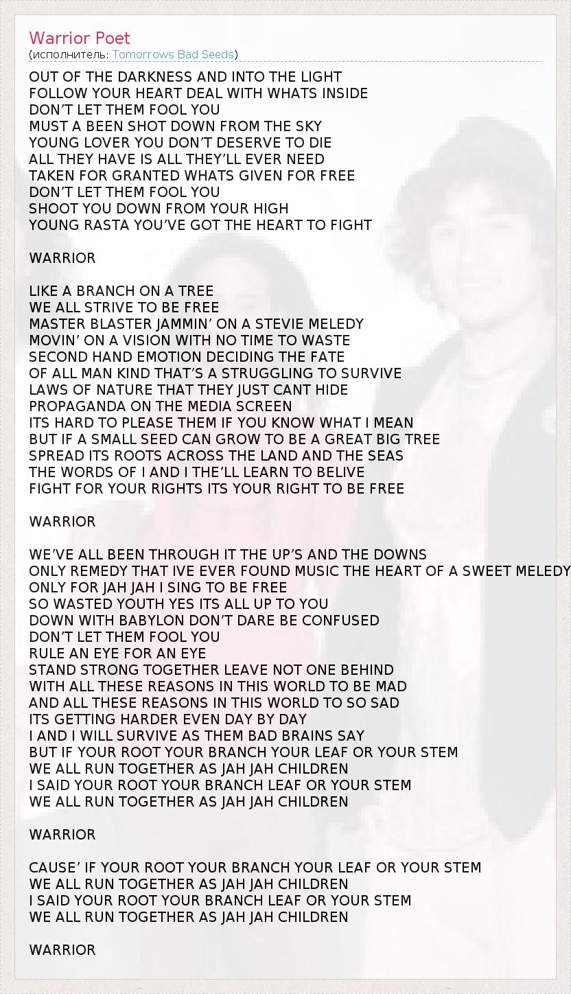 А как ты думаешь, о чем песня "Warrior Poet" ?
