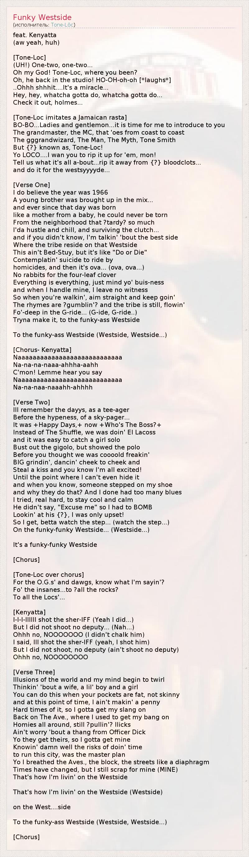 А как ты думаешь, о чем песня "Funky Westside" ?