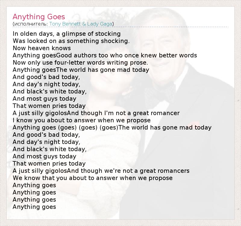 А как ты думаешь, о чем песня "Anything Goes" ?