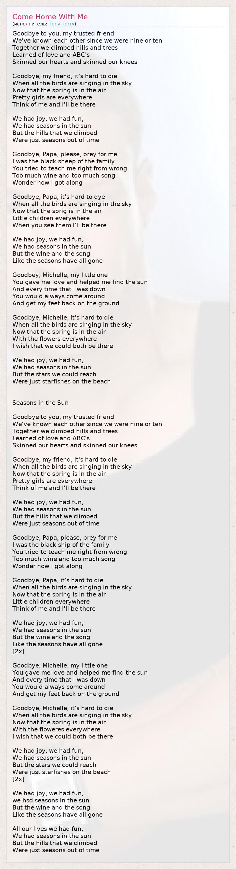 А как ты думаешь, о чем песня "Come Home With Me" ?