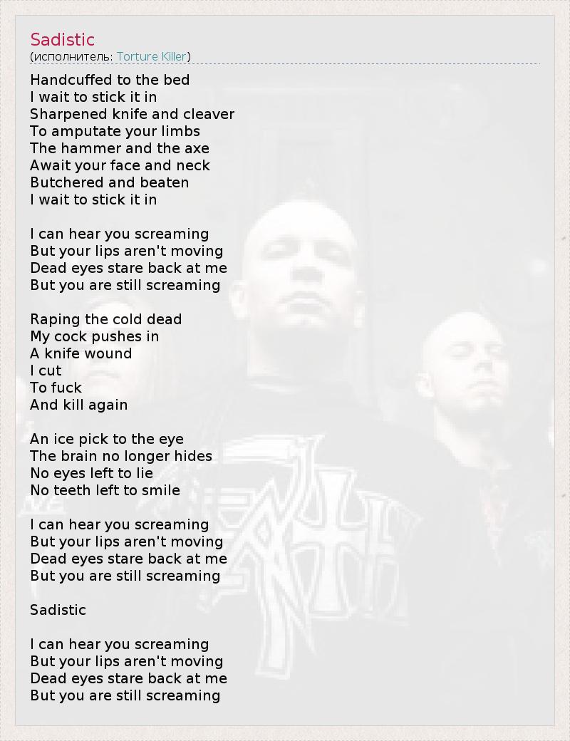 Это интересно:TORTURE KILLER создали весной 2002 года известные финские дэт-музыканты Jari Laine (ADRAMELECH), Tuomo Latvala (DEMIGOD, DEEPRED, TORN), Tuomas Karppinen (TORN, FUNERAL FEAST) и переквалифицировавшийся в вокалиста басист FUNERAL FEAST Matti Liuke, захотевшие ради забавы поиграть кавера SIX FEET UNDER и OBITUARY. Но после первого концерта они решили исполнять свою музыку в духе brutal death старой школы и название выбрали по песне SIX FEET UNDER с альбома "Maximum Violence" (1999).... продолжение