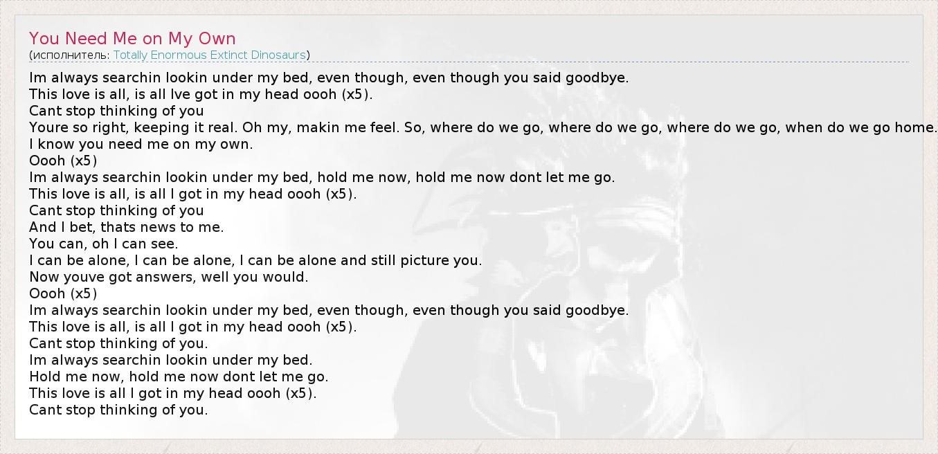 А как ты думаешь, о чем песня "You Need Me on My Own" ?