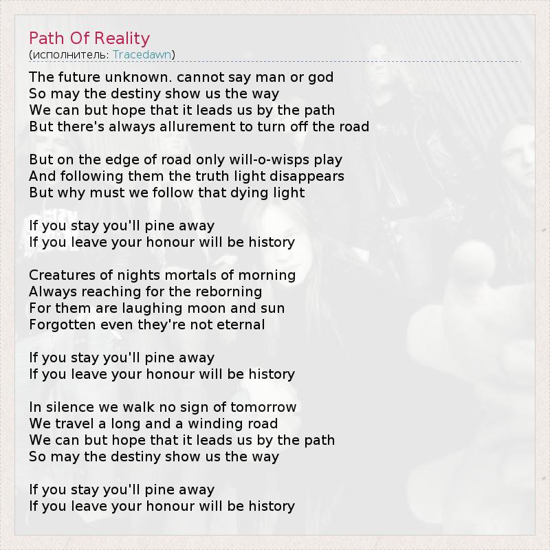А как ты думаешь, о чем песня "Path Of Reality" ?