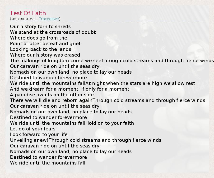 А как ты думаешь, о чем песня "Test Of Faith" ?