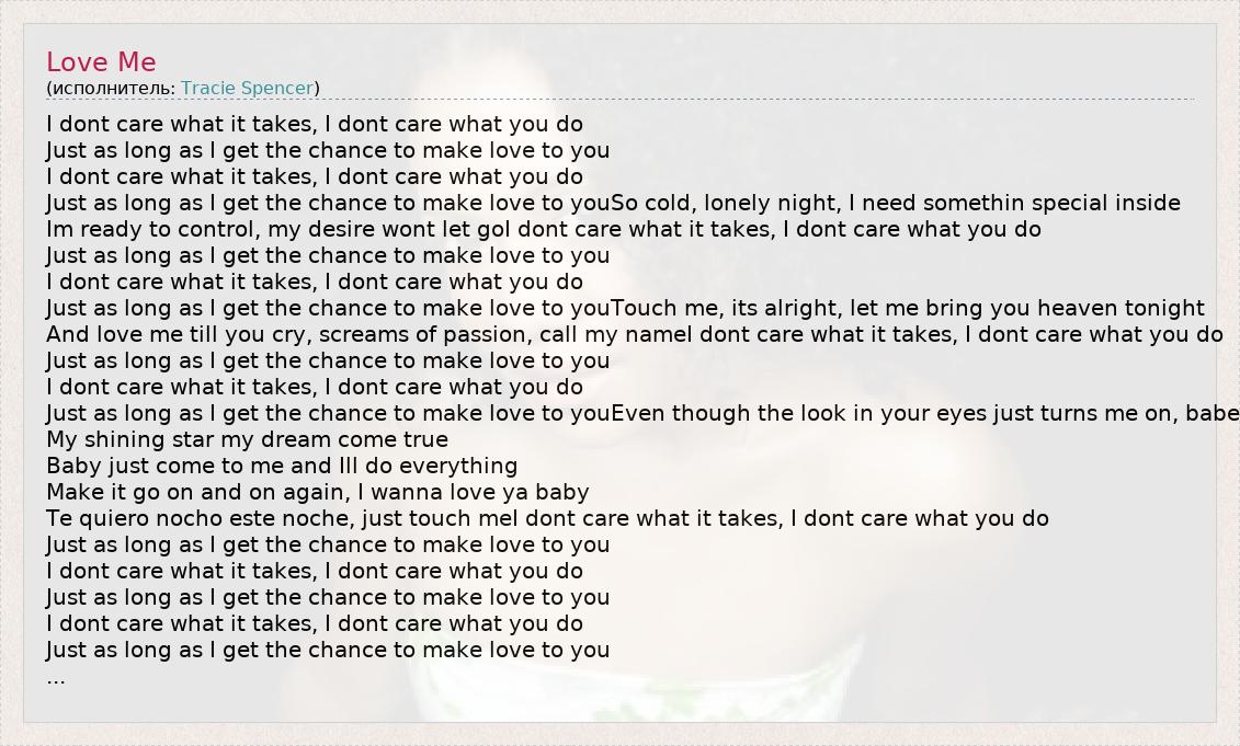 And love me till you cry, screams of passion, call my nameI dont care what it takes, I dont care what you do
