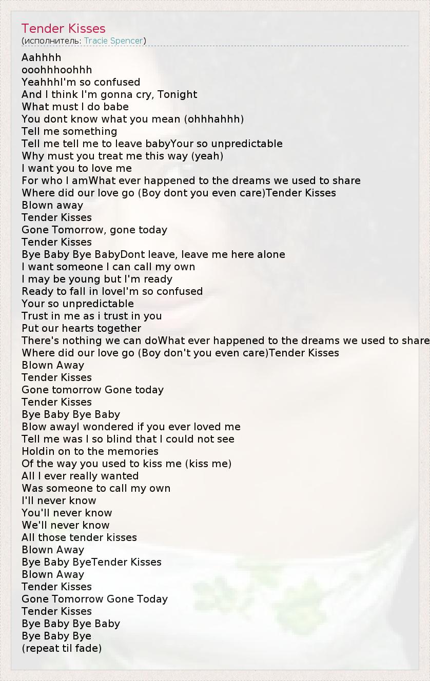 А как ты думаешь, о чем песня "Tender Kisses" ?