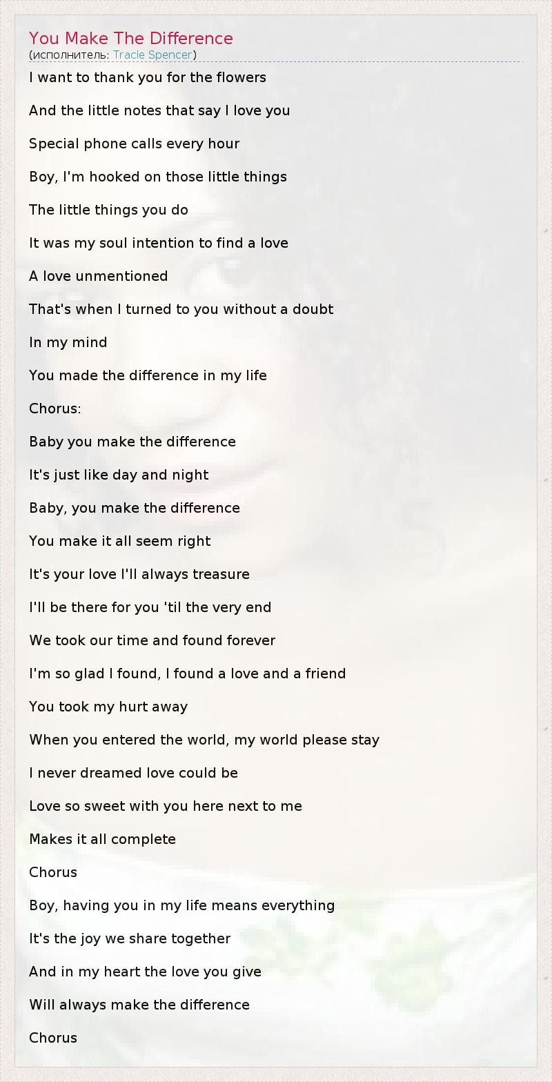 А как ты думаешь, о чем песня "You Make The Difference" ?