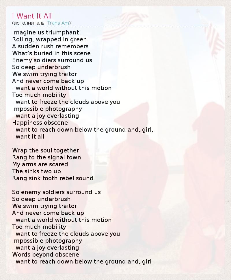 А как ты думаешь, о чем песня "I Want It All" ?