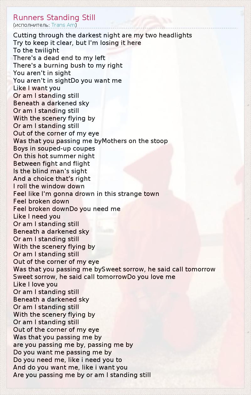 А как ты думаешь, о чем песня "Runners Standing Still" ?