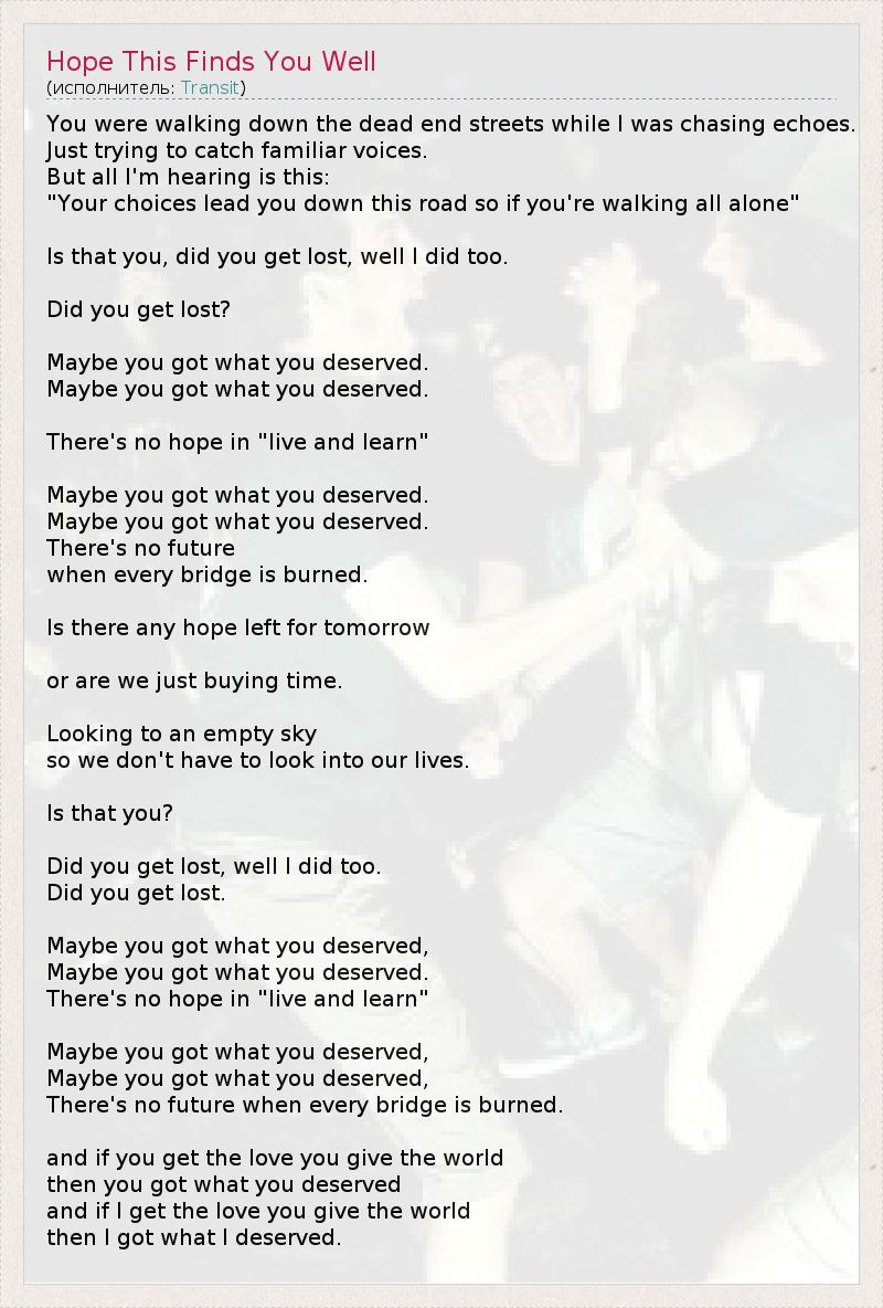 А как ты думаешь, о чем песня "Hope This Finds You Well" ?