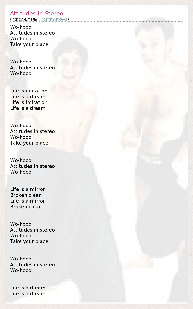 А как ты думаешь, о чем песня "Attitudes in Stereo" ?