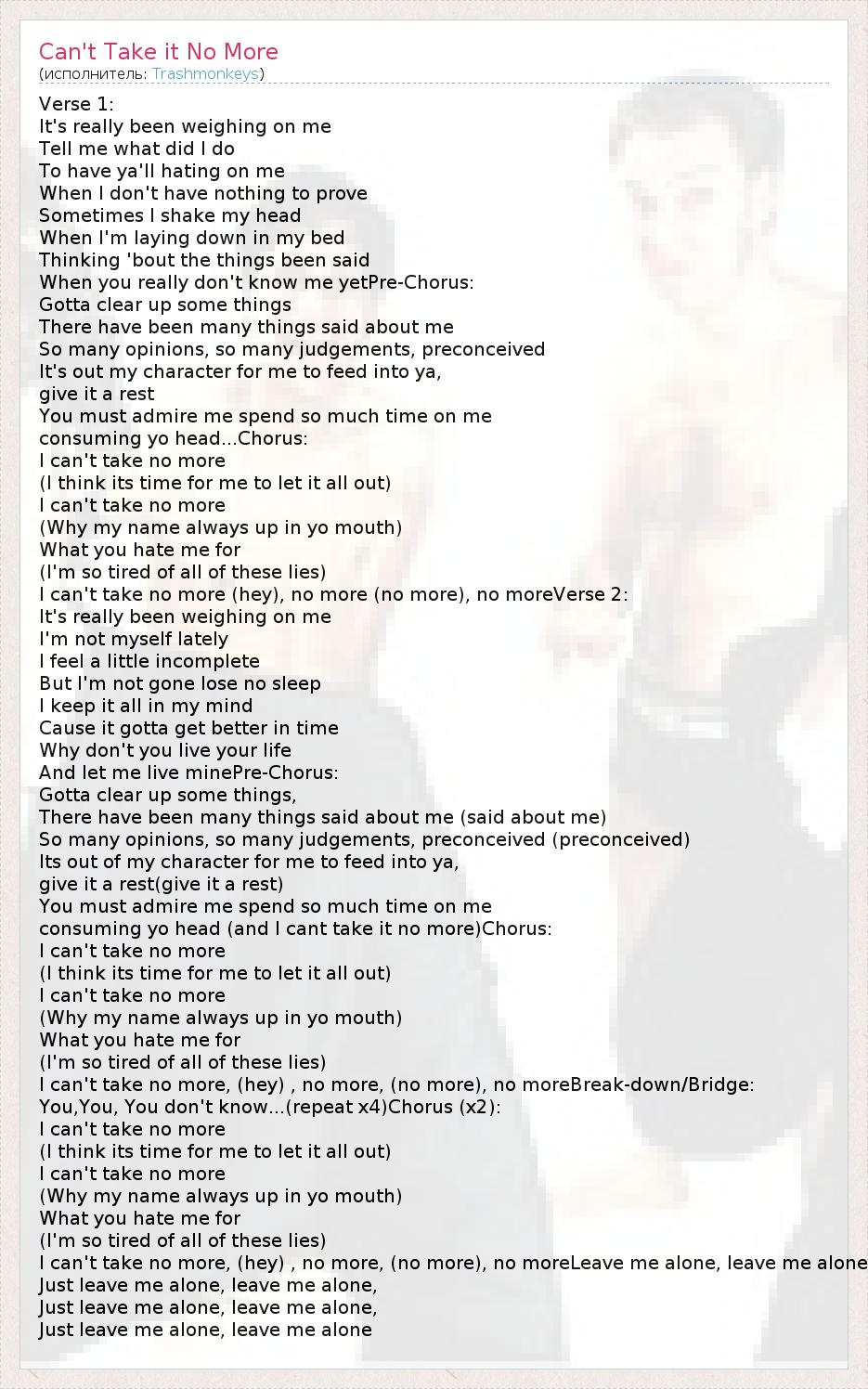 А как ты думаешь, о чем песня "Can't Take it No More" ?