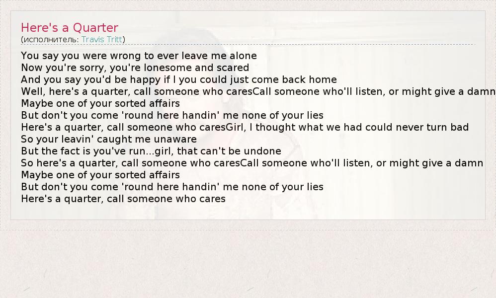 А как ты думаешь, о чем песня "Here's a Quarter" ?