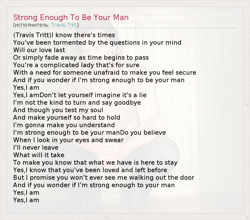 А как ты думаешь, о чем песня "Strong Enough To Be Your Man" ?