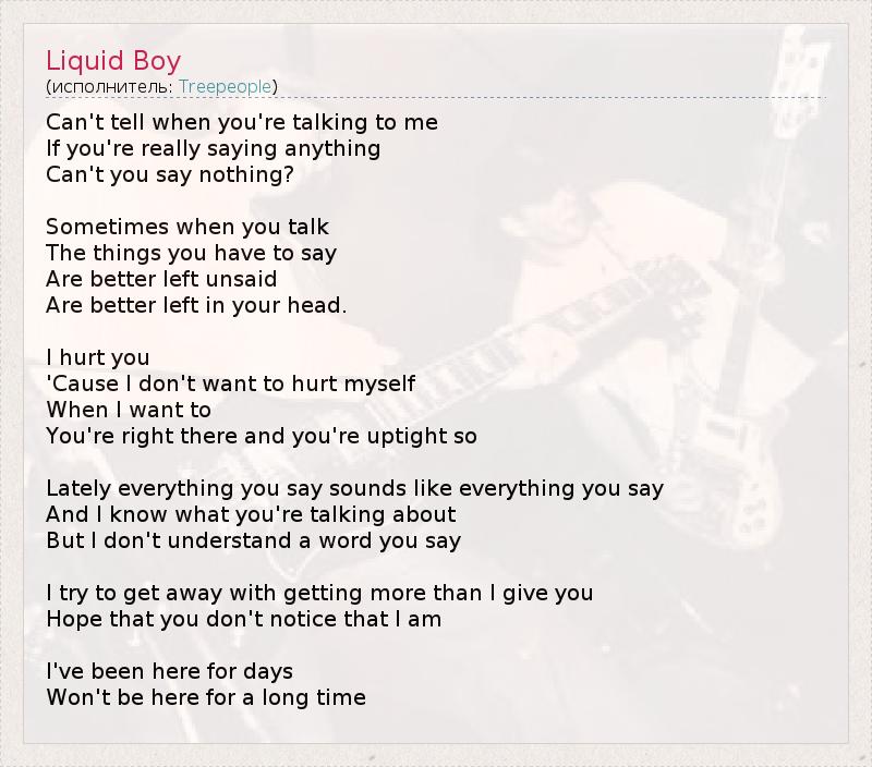 А как ты думаешь, о чем песня "Liquid Boy" ?