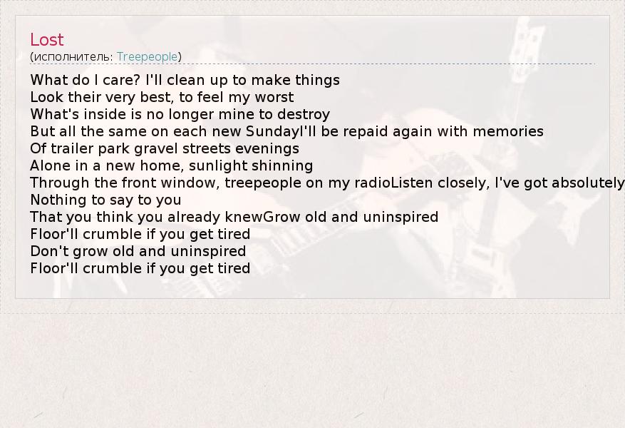 Это интересно:Treepeople - группа из города Boise, штат Айдахо, основным жанром которой считался альтернативный рок . В 1988 году группа появилась на свет, распалась в 1994.Группа получила местную известность и успех в конце 1980-х и начале 1990-х годов, но после потери нескольких членов семьи, из-за участия Дуга Мартча (Doug Martsch) в Built To Spill, группа распалась в 1994 году, выпустив три альбома и несколько синглов.... продолжение