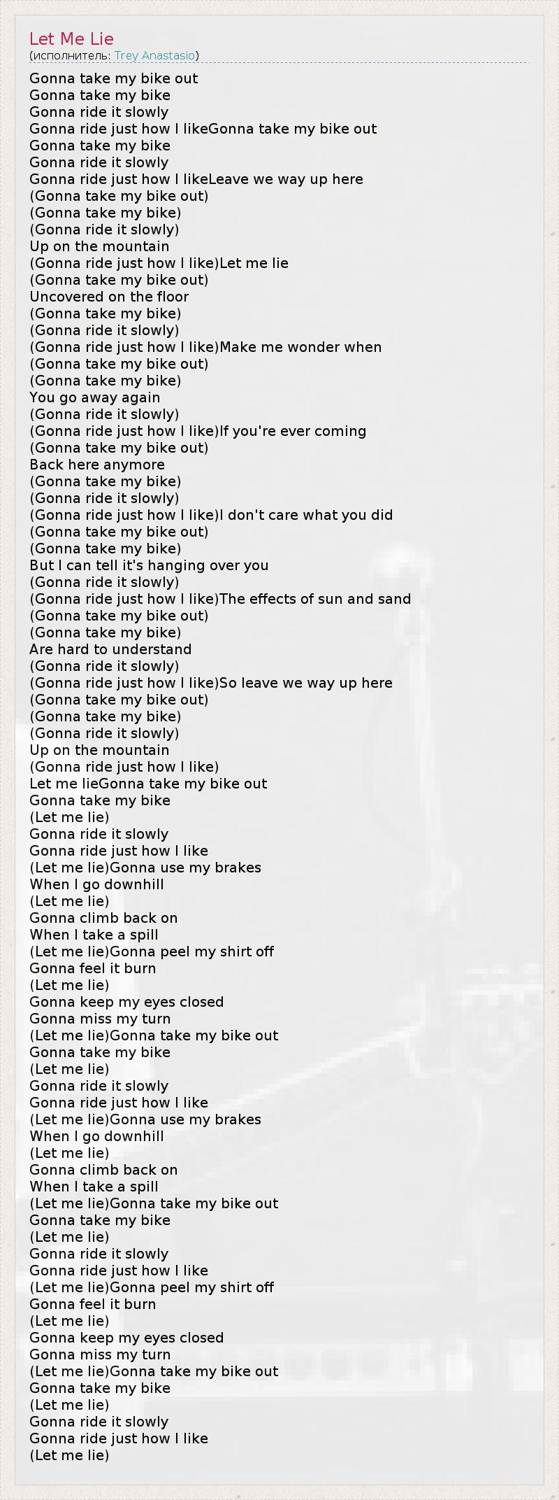 А как ты думаешь, о чем песня "Let Me Lie" ?