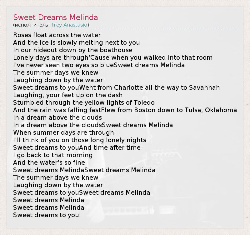 А как ты думаешь, о чем песня "Sweet Dreams Melinda" ?