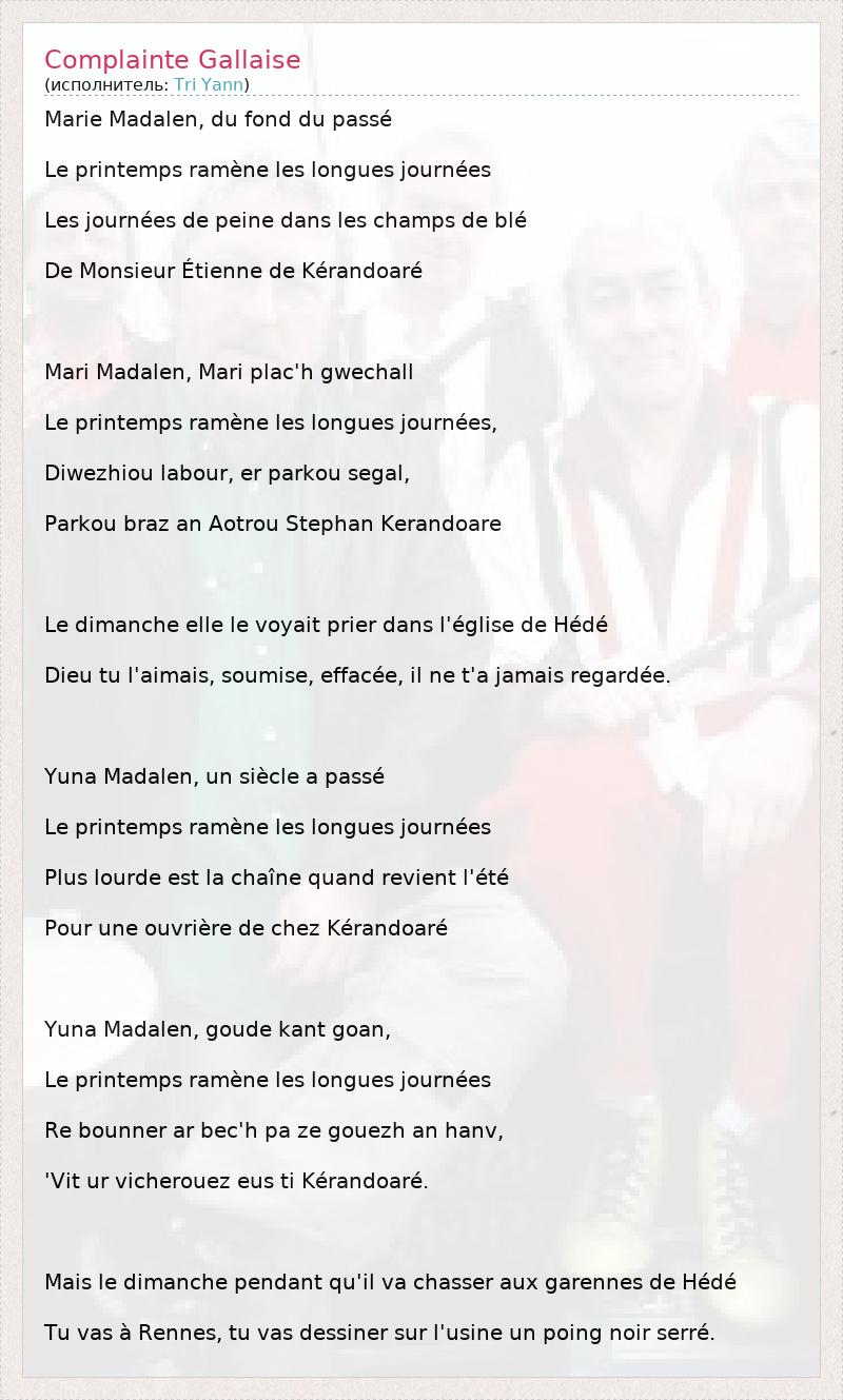 А как ты думаешь, о чем песня "Complainte Gallaise" ?