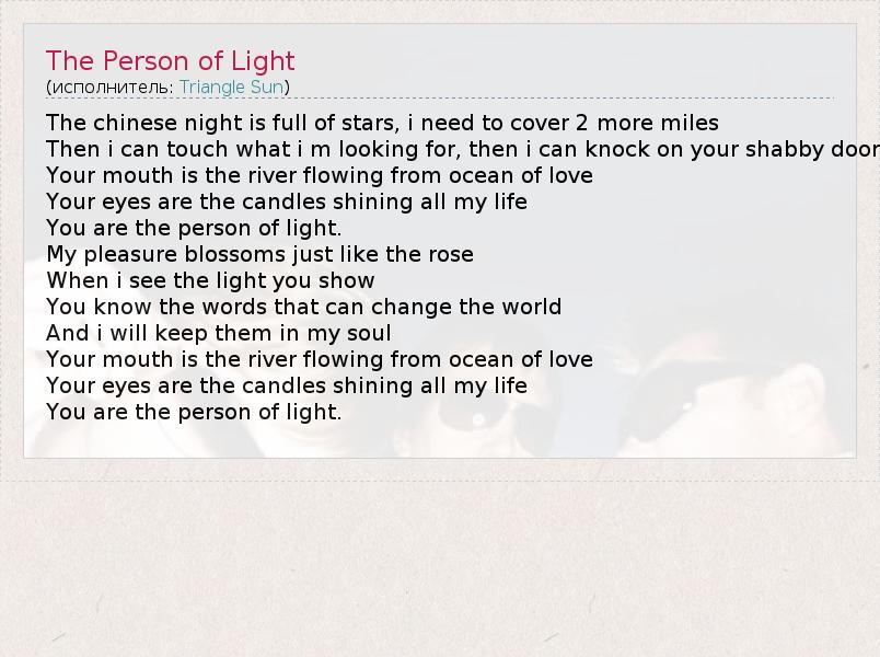 А как ты думаешь, о чем песня "The Person of Light" ?