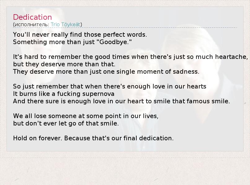 А как ты думаешь, о чем песня "Dedication" ?