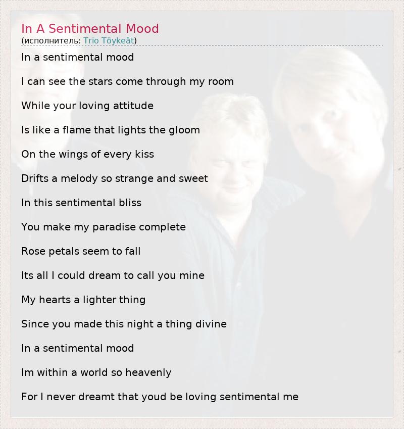 А как ты думаешь, о чем песня "In A Sentimental Mood" ?