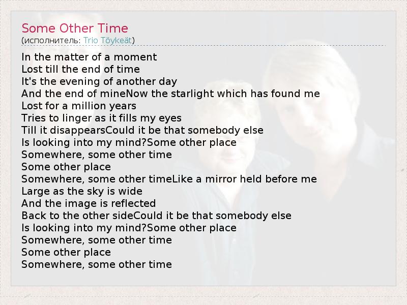 А как ты думаешь, о чем песня "Some Other Time" ?