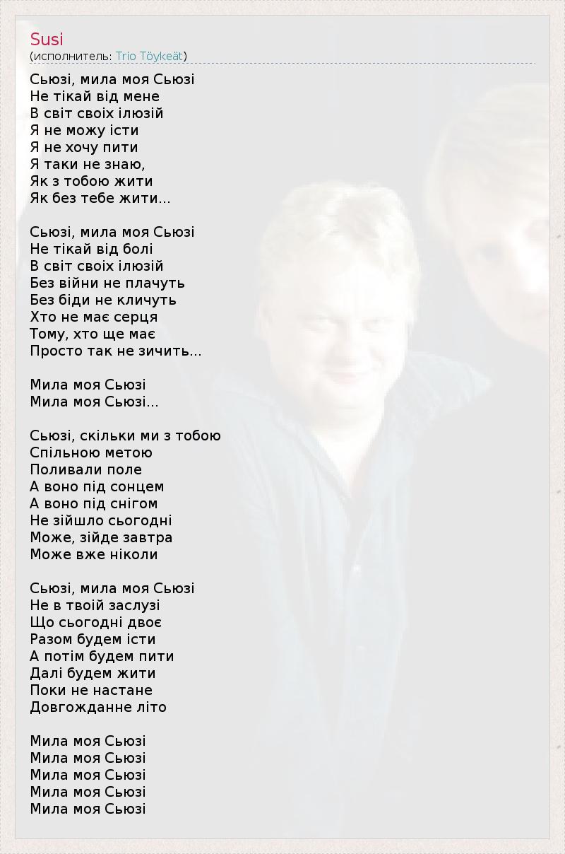Я готов всю жизнь свою тебя  Дальнабой ты король дорог  Ты морячка - я моряк.  Есаул, что ж ты бросил коня  Была бы ты со мной (при уч. Honey G) (2016)  Ойся, ты ойся(славянская-казачья)  А ты одна (Sound by K1RG)  Если ты уйдёшь (If You Go Away)  Ты знаешь  Мама ( муз. и сл. Олег Газманов)В