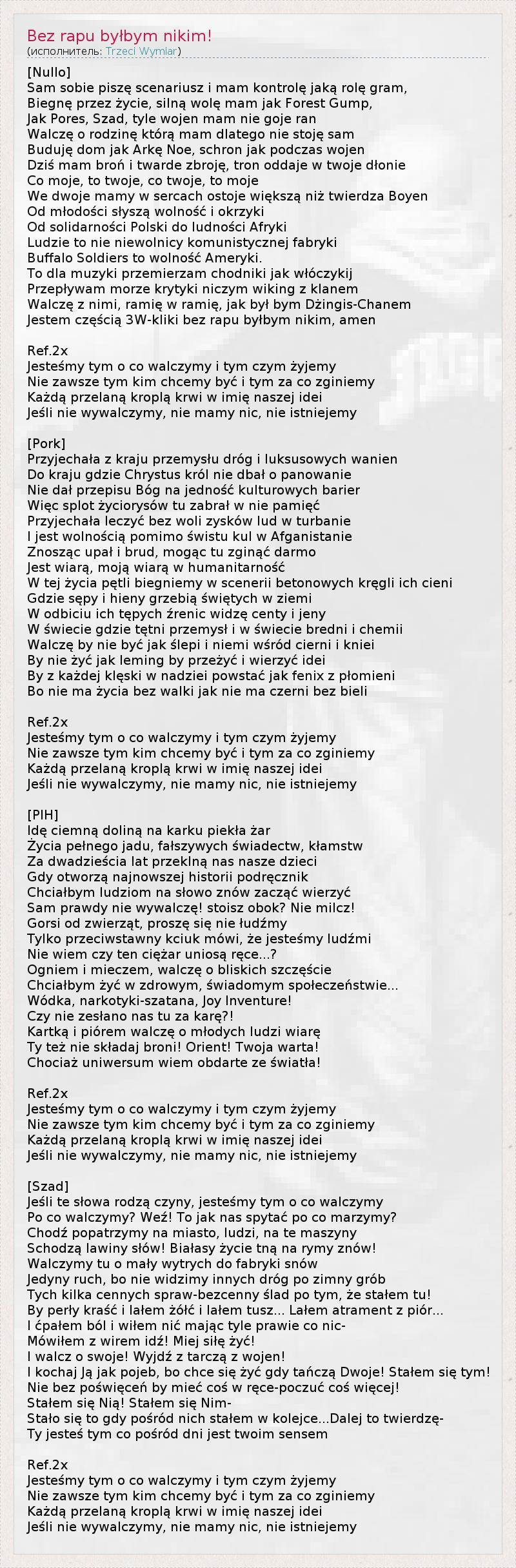 А как ты думаешь, о чем песня "Bez rapu byłbym nikim!" ?