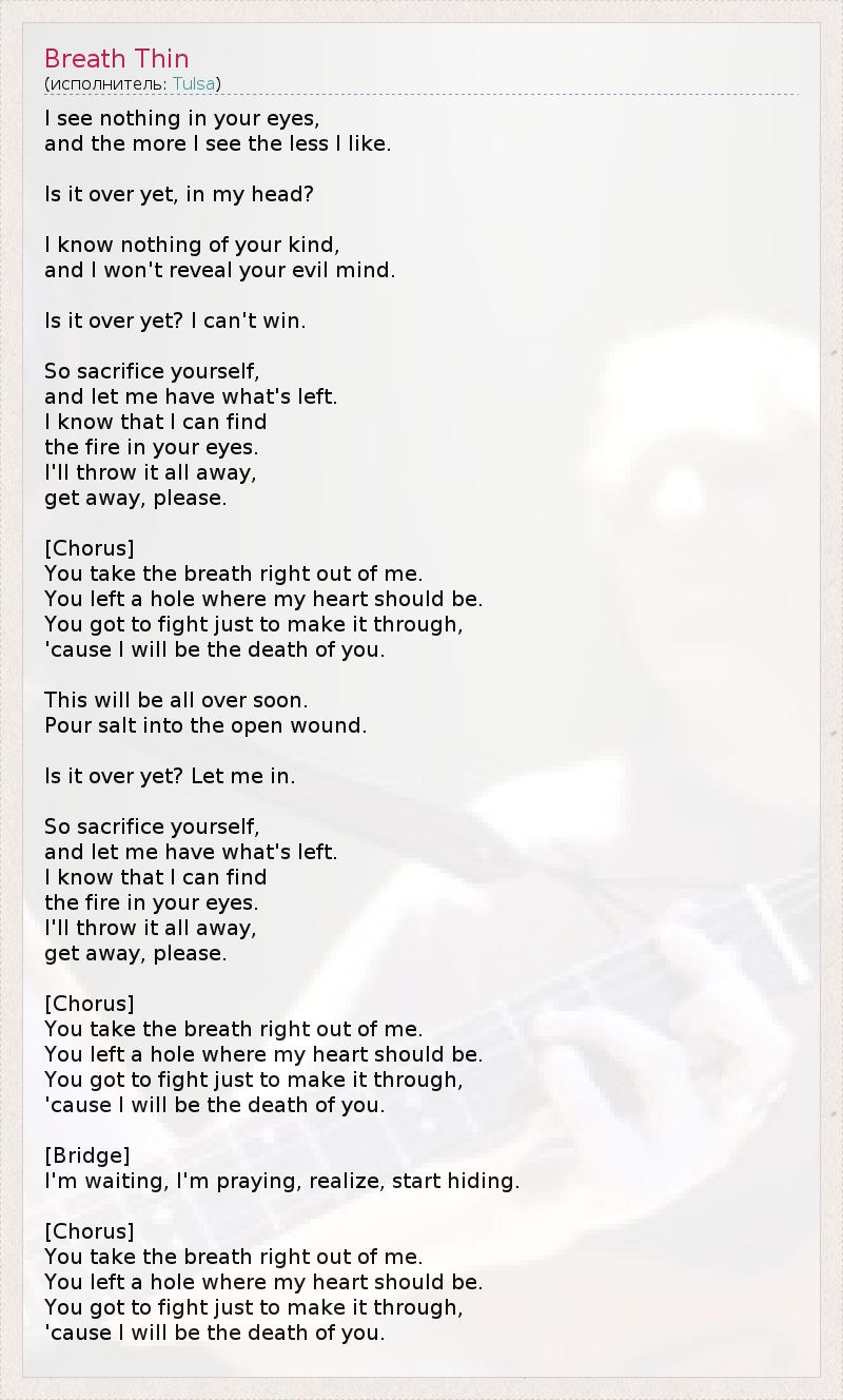 А как ты думаешь, о чем песня "Breath Thin" ?