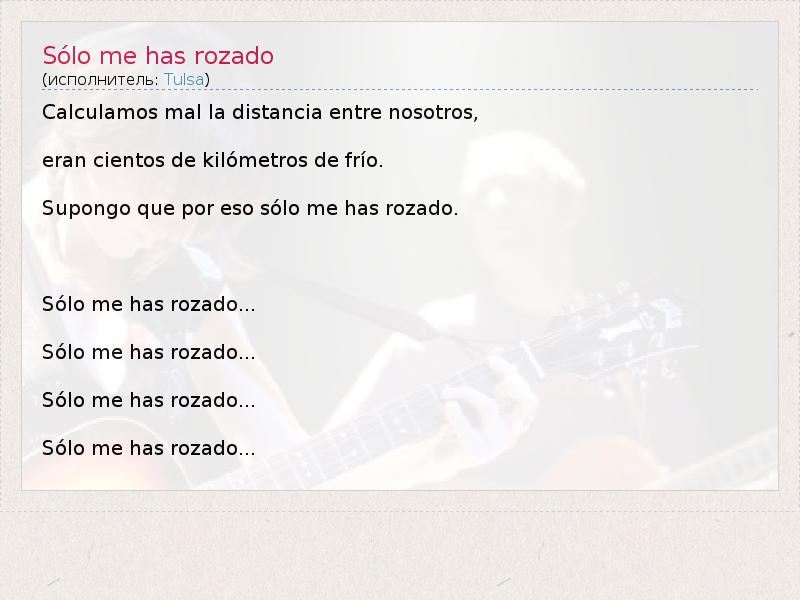А как ты думаешь, о чем песня "Sólo me has rozado" ?