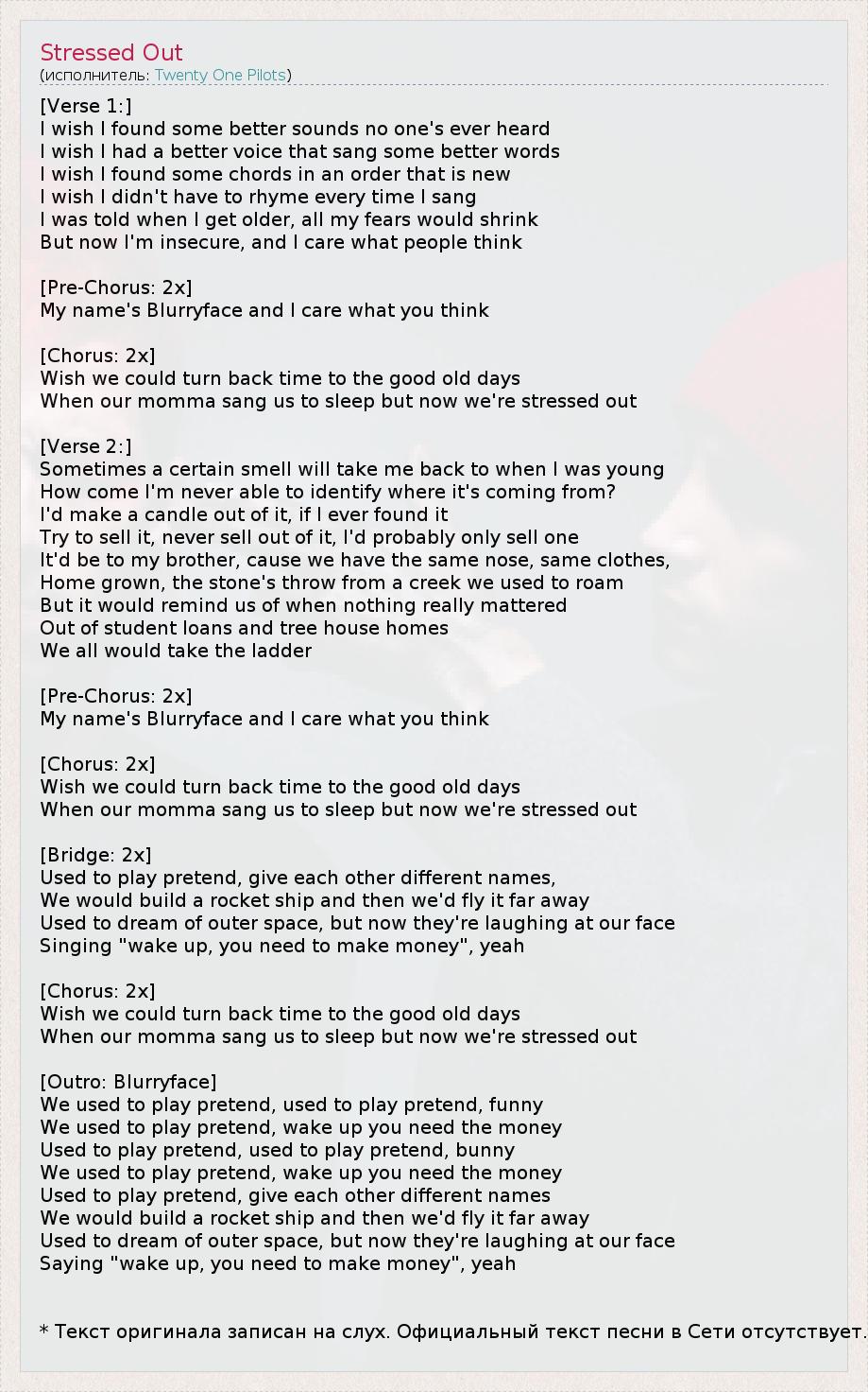 А как ты думаешь, о чем песня "Stressed Out" ?